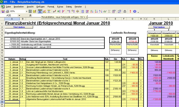 Buchhaltungsprogramm auf der Basis von Microsoft Excel in den