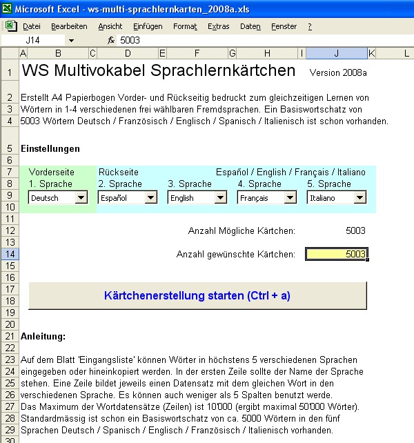In der hier vorliegenden Version können 5003 Vokabeln eines